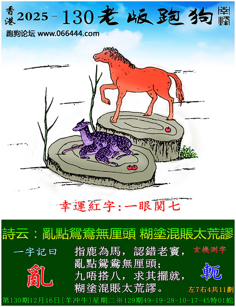 130期:香港跑狗论坛原創-【㊣一句解特码】→资料已公開 跑狗出版社